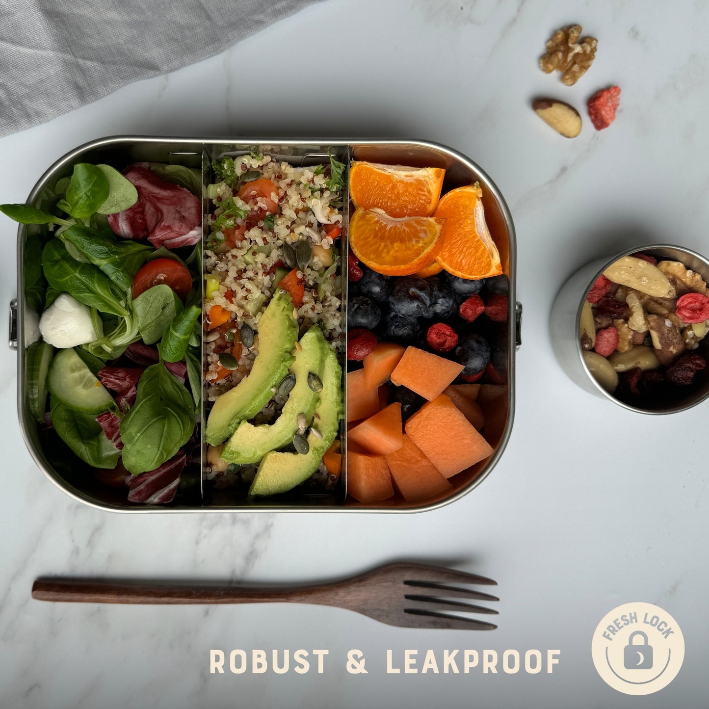 Our plastic-free lunch boxes are made from LFGB approved 304 grade stainless steel.