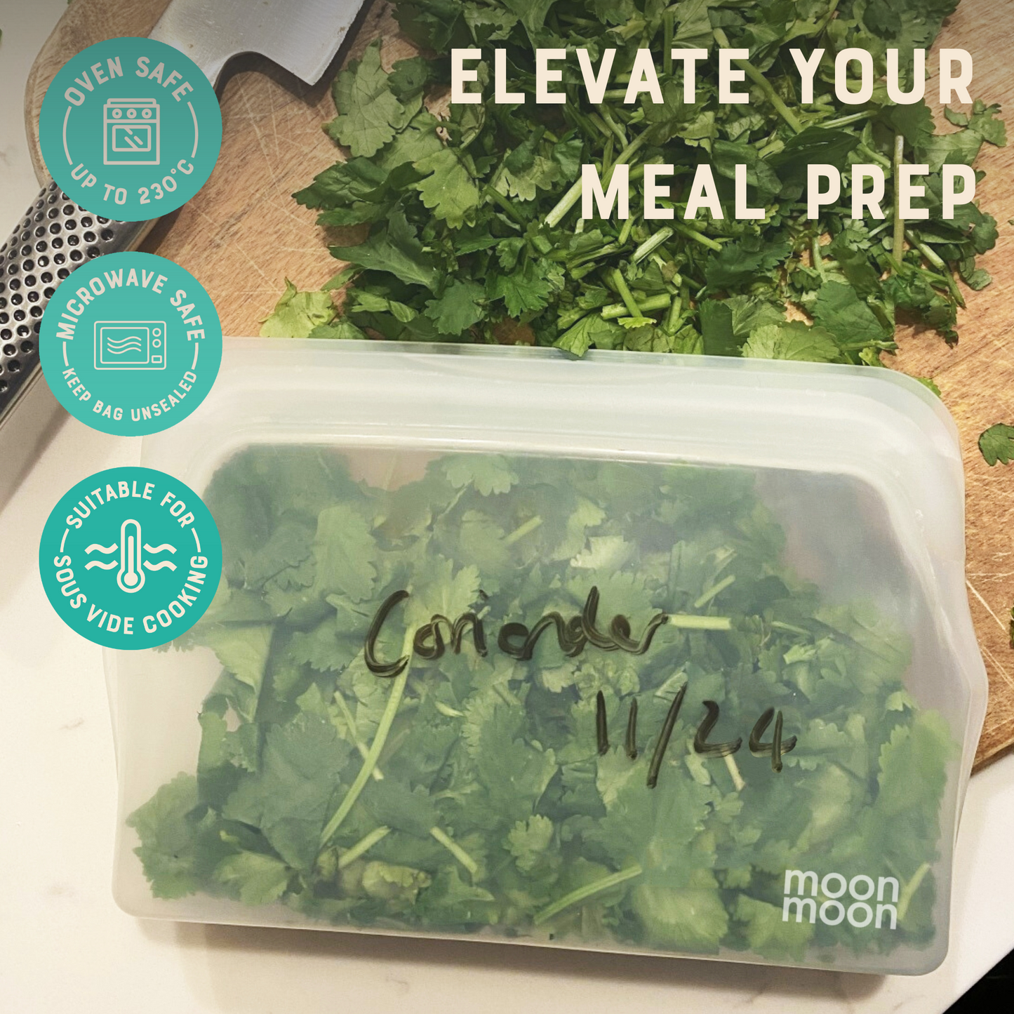 Prepping with moonmoon silicone food pouches is easy. Simply seal and store your fresh ingredients, keeping your food fresher for longer.