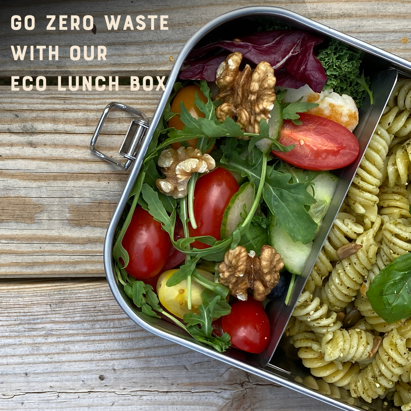GO ZERO WASTE WITH OUR ECO LUNCH BOX. Save money, eat healthier and reduce waste by packing your own lunch and snacks. Opt for our plastic-free lunch box made from 304 grade stainless steel. With no exposure to harmful chemicals, our lunch box is BPA free and FDA approved.