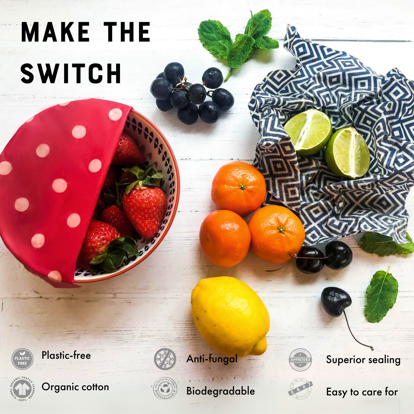 Each pack contains 3 sizes (small, medium & large). Cover a bowl or jar, wrap your sandwich or some snacks, or keep your cheese, fruit or cut vegetables fresh. Our vibrant, modern designs will make a beautiful addition to your kitchen, fridge or lunch box.
