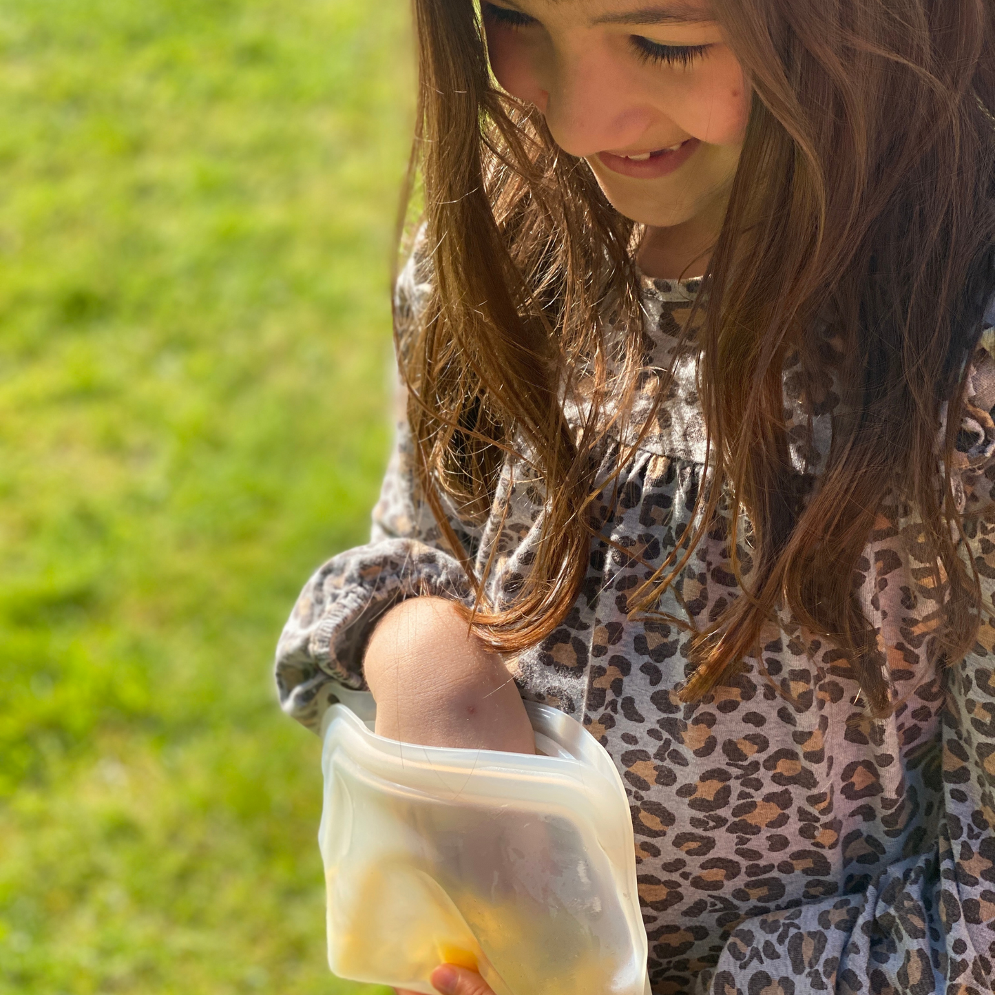 Our reusable food bags occupy minimal space in your fridge or freezer. Keep your cupboards organised, or use to take your snacks out and about.